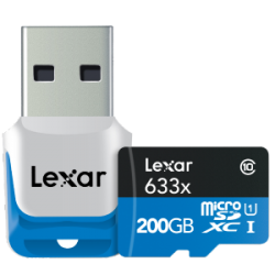 Capture your adventures in HD. Designed for your sports camcorder, tablet, or smartphone, Lexar® High-Performance microSDHC™/microSDXC™ UHS-I cards (633x) let you quickly capture, play back, and transfer a large number of multimedia files, including 1080p Full-HD, 3D, and 4K video. These Class 10 cards leverage UHS-I technology to deliver high-speed performance. Includes USB 3.0 reader.