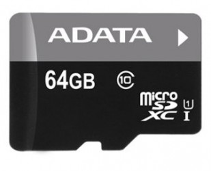 MicroSD atmiņas kartes»A-DATA»ADATA MICROSDXC 64 GB UHS-I CLAS S10-RETAIL W/1 ADAPTER»(new)