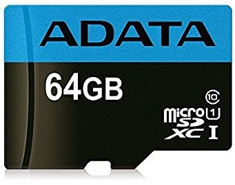 MicroSD atmiņas kartes»A-DATA»ADATA Premier 64 GB microSDHC UHS-I Class 10, R/W performance: up to 85/25 MB/s, with adapter»(new)