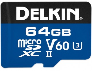 atmiņas kartes»DELKIN»DELKIN 64GB MICROSDXC 2000X V60 U3, WITH ADAPT. - R300/W100 MB/S UHS-II»(new)