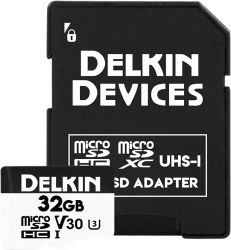 In the Box (1) Delkin Devices Hyperspeed UHS-I (U3/V30) microSD Memory Card, SD Card Adapter, Protective Storage Case