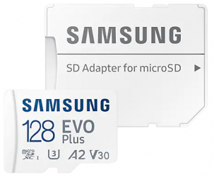 MicroSD atmiņas kartes»SAMSUNG»Samsung EVO PLUS (2021) UHS-I 128 GB, R130/W30 mb/s , V30 , MicroSDXC, U3 , class 10, SD adapter»(new)