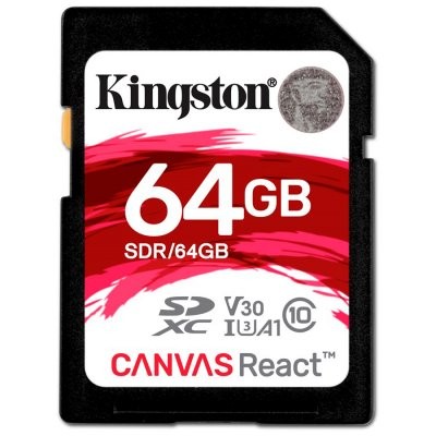 SD atmiņas kartes»KINGSTON»Kingston Canvas React 64 Gb. R100/W80 MB/s A1 V30 UHS-I U3»(new)