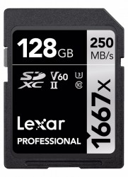 SD atmiņas kartes»LEXAR»LEXAR PROFESSIONAL 128 GB. 1667X SDHC/SDXC R250/W120 mB/s V60 U3 SDHC UHS-II»(new)