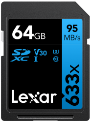 SD atmiņas kartes»LEXAR»LEXAR PROFESSIONAL 64GB 633X SDXC R95/W45 mb/s , V30 , UHS-I , CL 10 ,U3 / BLUE Series»(new)
