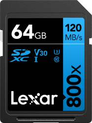 SD atmiņas kartes»LEXAR»LEXAR PROFESSIONAL 64GB 800X SDXC R120/W45 mb/s , V30 , UHS-I , CL 10 ,U3 / BLUE Series»(new)