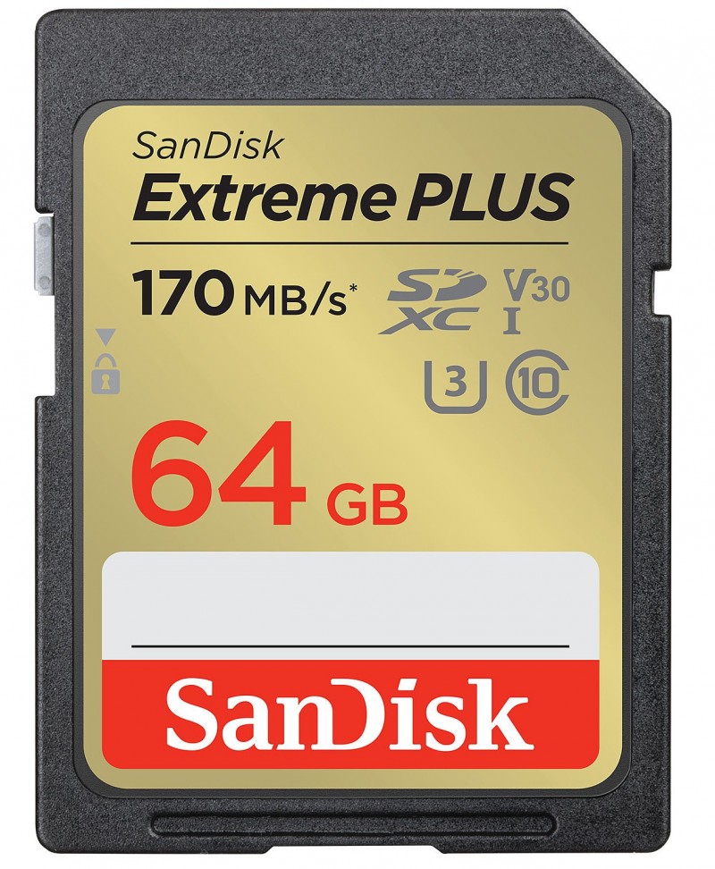 SD atmiņas kartes»SANDISK»SanDisk ExtremePLUS 64GB R170/W80 V30 U3 MB/s UHS-I + 2 years RescuePRO Delux»(new)