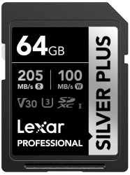 SD atmiņas kartes»LEXAR»Lexar SDXC Professional SILVER Plus UHS-I/U3/A2/4K R205/W100 (V30) 64GB»(new)