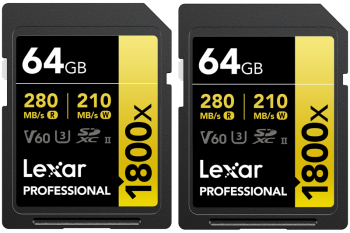 SD atmiņas kartes»LEXAR»Lexar SDXC Pro 1800x U3 UHS-II R280/W210 (V60) 64GB - 2pack»(new)
