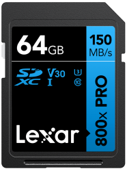 SD atmiņas kartes»LEXAR»LEXAR PROFESSIONAL 64GB 800X PRO SDXC R150/W30 mb/s , V30 , UHS-I , CL 10 ,U3 / BLUE Series»(new)