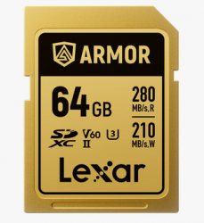 SD atmiņas kartes»LEXAR»Lexar SDXC ARMOR Gold UHS-II U3, Stainless Steel, IP68 R280/W210 (V60) 64GB»(new)