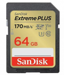 SD atmiņas kartes»SANDISK»SanDisk Extreme PLUS 64GB SDXC Memory Card 170MB/s & 80MB/s , UHS-I, Class 10, U3, V30»(new)