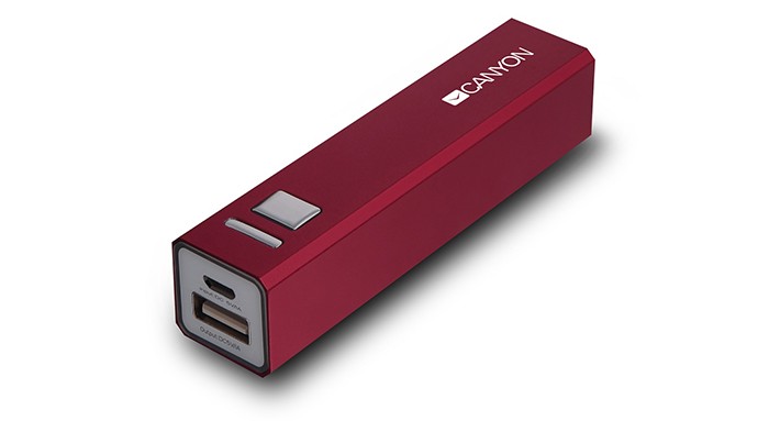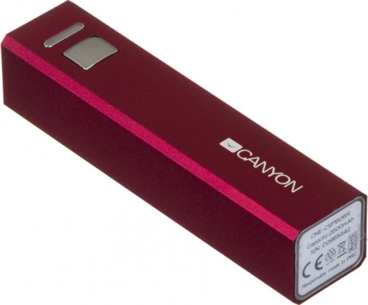 ārējā baterija»CANYON»CANYON CNE-CSPB26R Aluminium compact battery charger. Red, Capacity: 2600mAh, Output: DC5V 1A, Input: DC5V 1A Output Charging: 1.5-2 hours, Input Charging: 2-3 hours. Cycle Life: 500 times»(new)