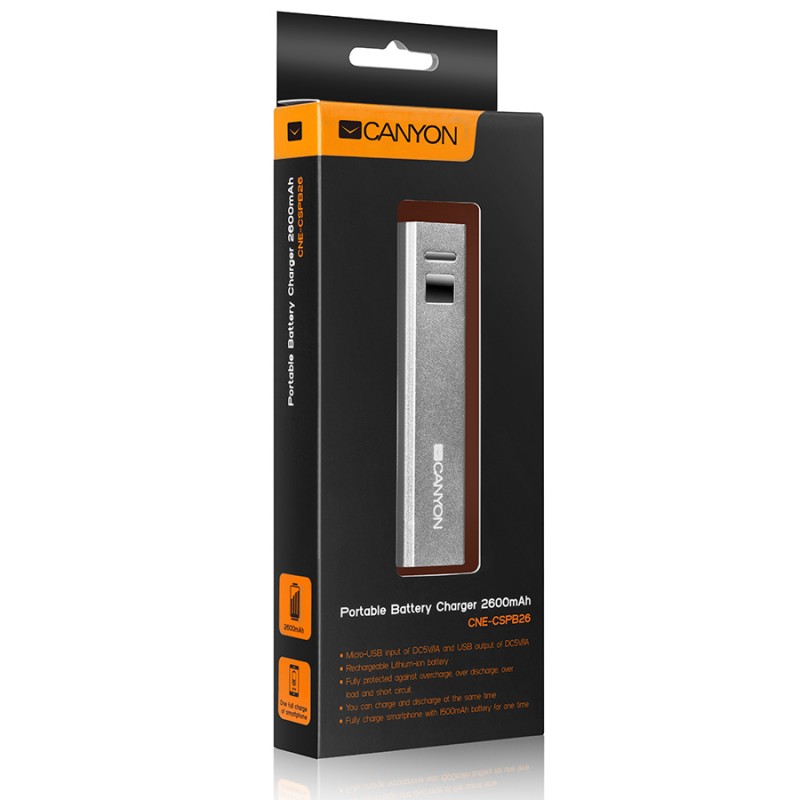 ārējā baterija»CANYON»CANYON CNE-CSPB26W Aluminium compact battery charger. white, Capacity: 2600mAh, Output: DC5V 1A, Input: DC5V 1A Output Charging: 1.5-2 hours, Input Charging: 2-3 hours. Cycle Life: 500 times»(new)