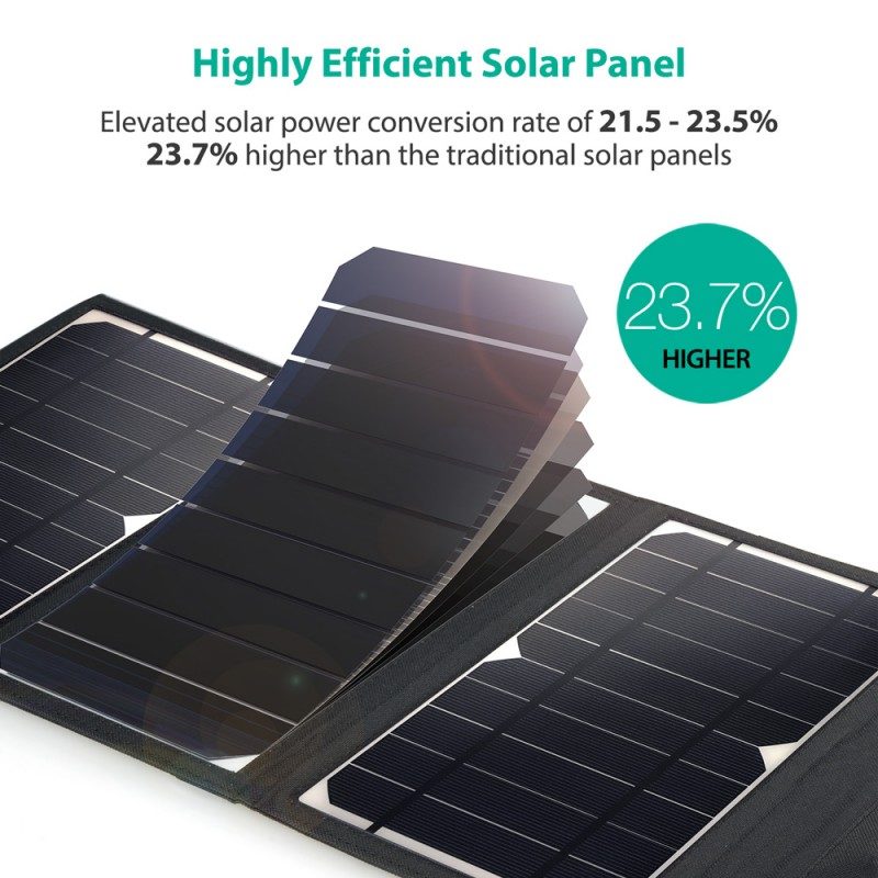 Efficient Energy Conversion: Benefit from an efficient solar conversion ratio that is up to 23.5% – that means more sunlight is used to quickly power your devices