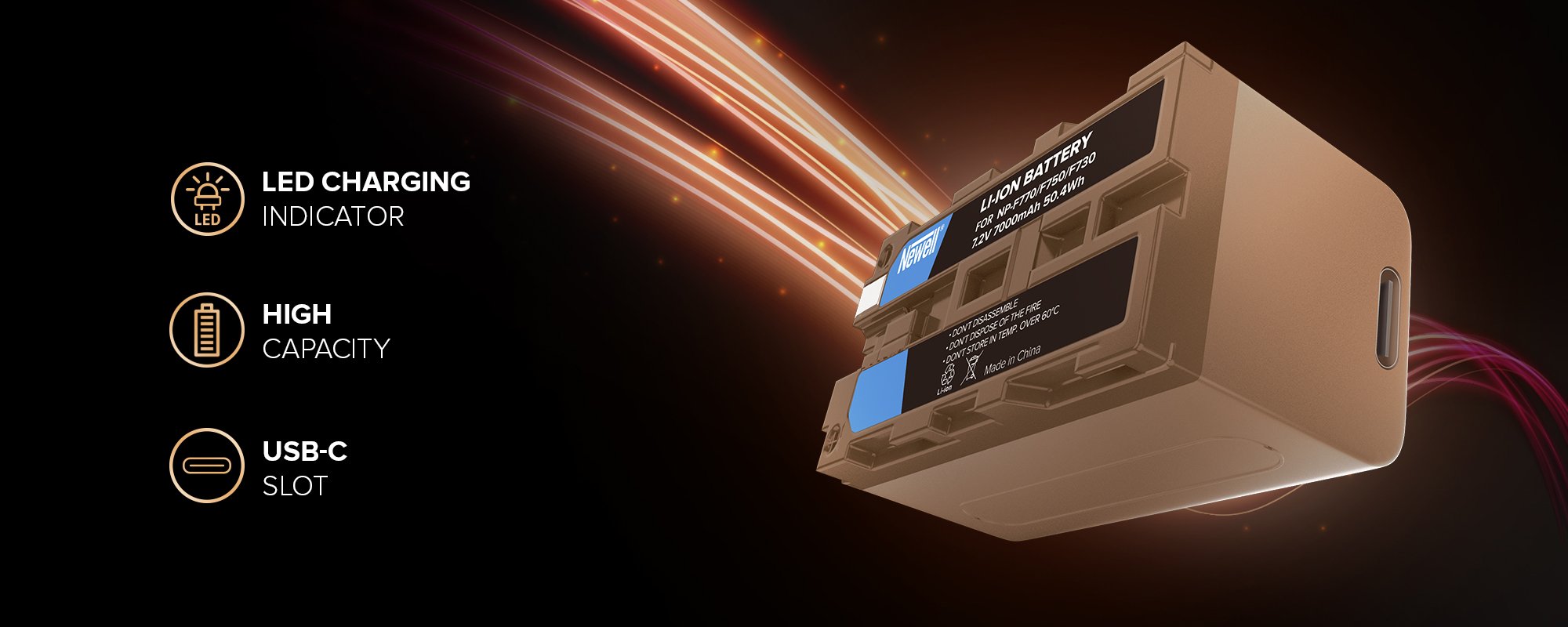 Traditional chargers inform you of the charging process via LEDs or messages displayed on the screen. By choosing the Newell NP-F770 USB-C replacement for Sony, you don’t have to worry about the cells topping up out of your control. A small LED will light up red when you start charging with the USB-C cable and turn green when the energy reaches its peak.