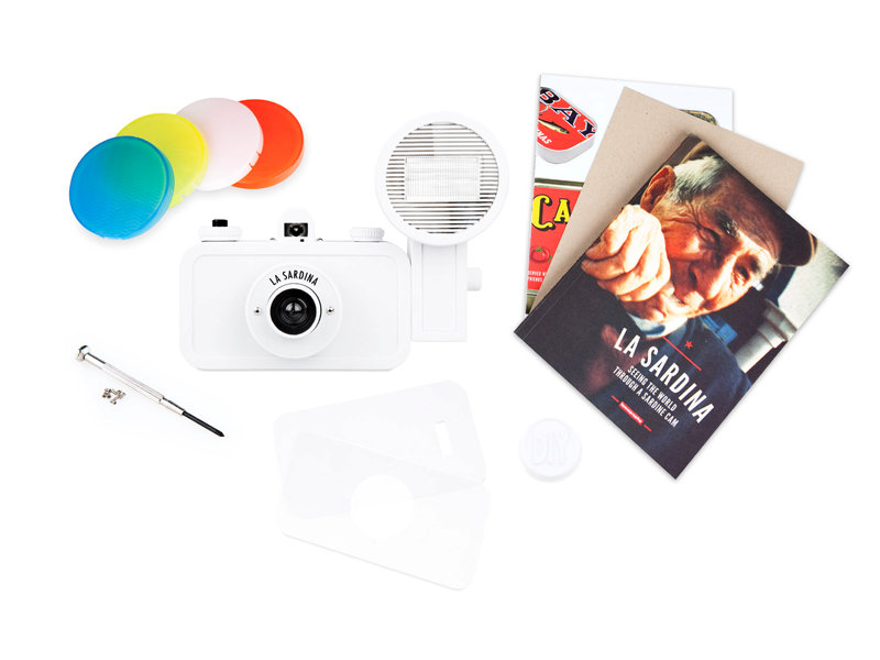 Itching to create your own camera masterpiece? The La Sardina and Flash DIY Edition will let you do just that. Write, draw, paint or glue something on it—this 35mm wide-angle wonder will let your imagination run free. The camera comes with a Fritz the Blitz 2.0 Flash and includes lots of experimental features such as a multiple exposure switch and a rewind dial.