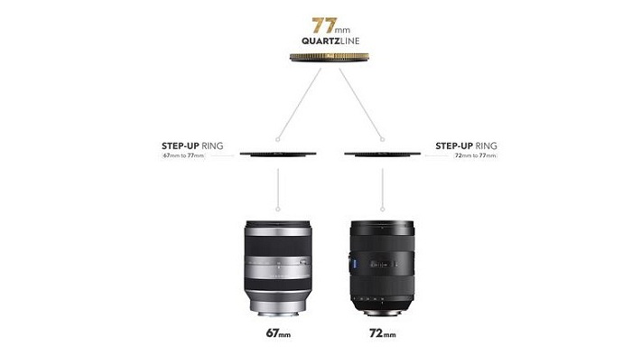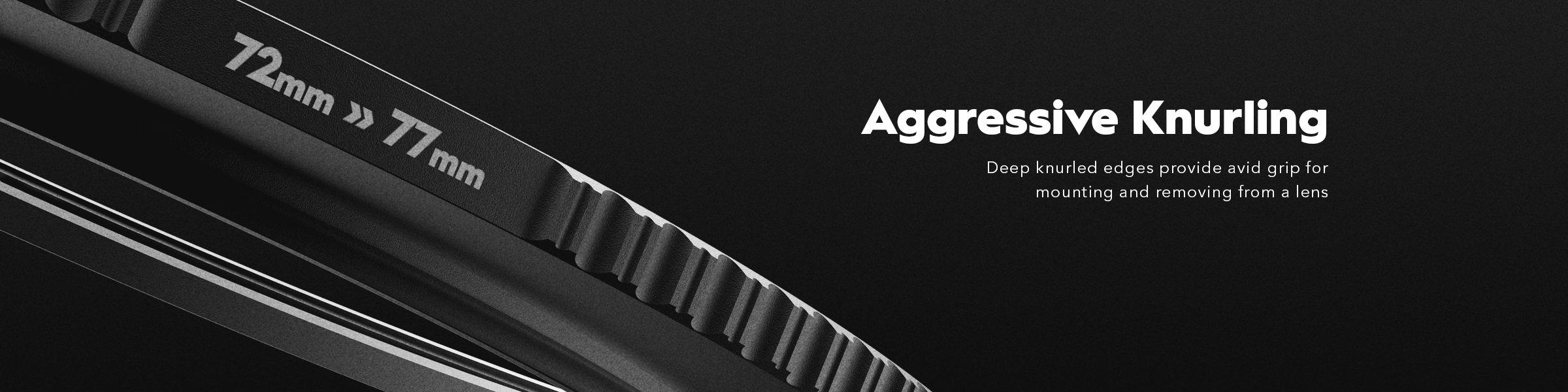 The Step-Up Ring expands the compatibility range for your filters to fit smaller diameter camera lenses. For example, our 67mm-77mm Step-Up Ring would allow your 77mm QuartzLine filter to fit your favorite 67mm lens. Featuring a deep knurled, CNC machined brass frame for easy mounting and durability, plus an electroplated matte black finish to block unwanted reflections, our Step-Up Ring is designed for production-grade use, out in the elements or in the studio. Each Step-Up Ring includes a protective hard case.
