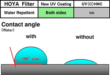 Water-repellent coating has been added to the anti-reflective coating. This coating repels water drops and makes easier to clean the filter surface from dirt or fingerprints.