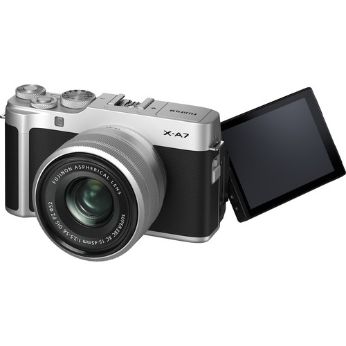 Complementing the imaging capabilities, the X-A7 features retro-styled dark silver-colored exterior and features a large, 16:9-ratio 3.5" 2.76m-dot touchscreen LCD. The screen has a free-angle design, too, which permits easy viewing from high and low angles, as well as front-facing angles for perfectly framed selfies. The camera also sports built-in Wi-Fi and Bluetooth, which permits wireless image sharing and remote camera control from paired mobile devices.