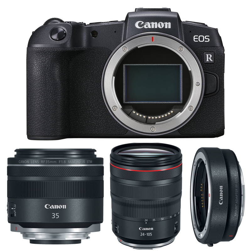 Kompaktā sistēma kamera»Canon»Canon EOS RP + RF 24-105mm f/4 L IS USM + Adapter EF-EOS R + RF 35mm f/1,8 Makro IS STM»(new)