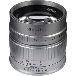 Characterized by its fast design, the silver, Fujifilm X-mount 55mm f/1.4 Lens from 7artisans is a compact portrait-length prime well-suited for available-light photography. Its bright f/1.4 maximum aperture benefits working in low lighting and also enables isolating subject matter using selective focus and shallow depth of field. The six elements, five groups optical design is enhanced with a multi-layer coating that helps to suppress flare and ghosting for improved contrast and color rendering in a variety of lighting conditions. Additionally, the manual focus design of the lens permits working with subjects as close as 1.1' away and its 14-blade diaphragm contributes to a pleasing bokeh quality.