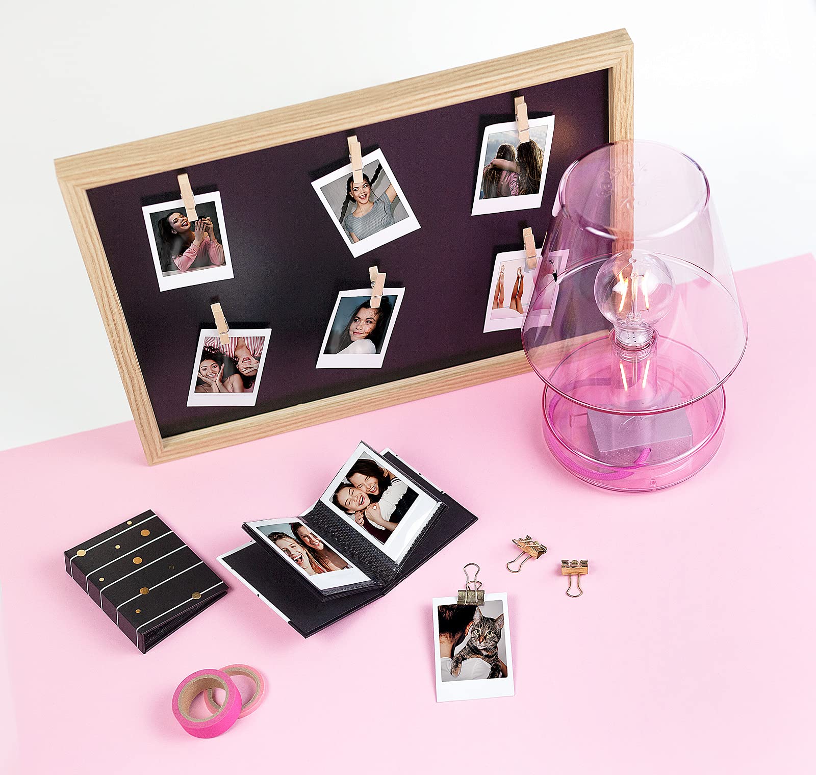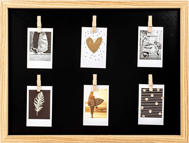 MDF wooden multi-frame with 6 wooden clips, black cover inside. Suitable for photos in Instax format, but also for notes, tickets and much more. Smart, chic, multifunctional.Profile: MDF wood Profile