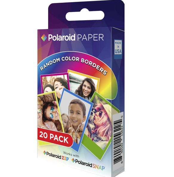 - 20-pack of 2-inch by 3-inch Zink photo paper with borders in 5 bright colours