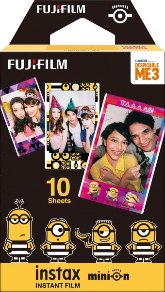 Liven up your instant prints with this 10-piece Fujifilm instax Mini Minion film pack. Its 10 assorted frame designs are inspired by the Despicable Me 3 movie, and the film's credit card size fits perfectly in a wallet ID window. The high-speed ISO 800 quality of this Fujifilm instax Mini Minion film pack produces vibrant prints