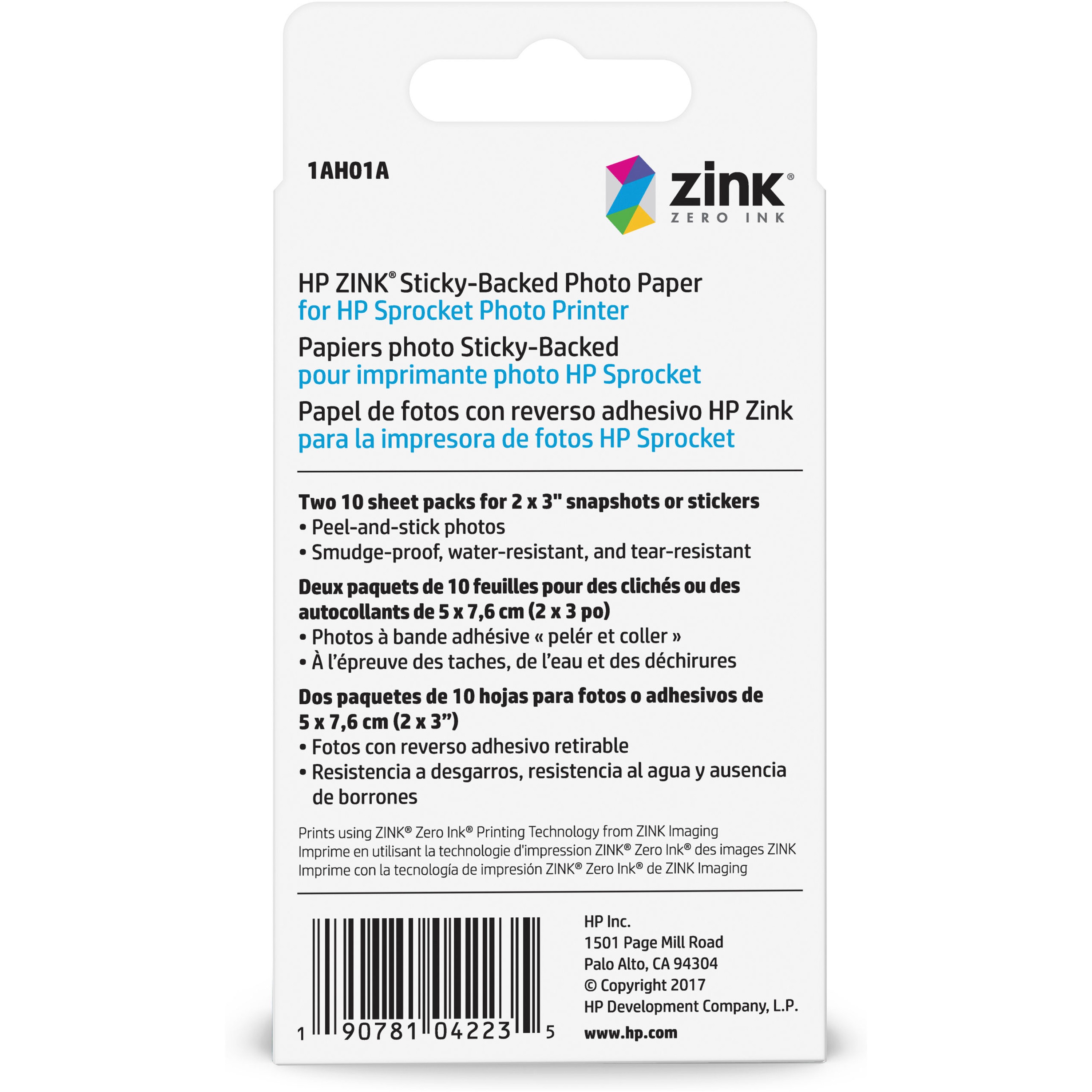 - What's in the Box: 2 or 5 10 sheet packs of 2x3-inch HP ZINK Sticky-Backed Photo Paper
