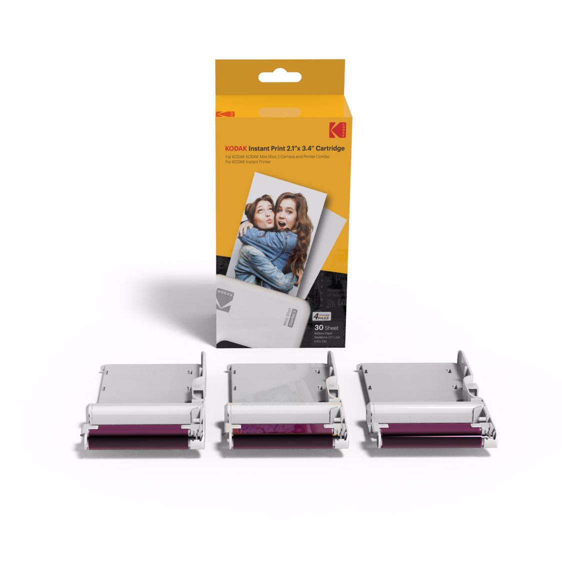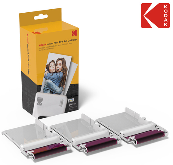 Paper cassette for Kodak Mini-shot instant cameras and Kodak Mini 2 printer. Contains 30 photo papers and ink for durable prints. Fits all Kodak 4Pass technology 2,1x3,4" products.