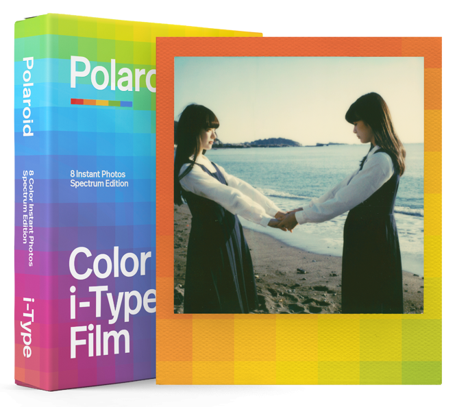 Get colorful. Our Spectrum Edition Color i-Type film frames each photo in a funky, chunky color gradient, inspired by our founder’s love of the light spectrum. 8 photos per pack.