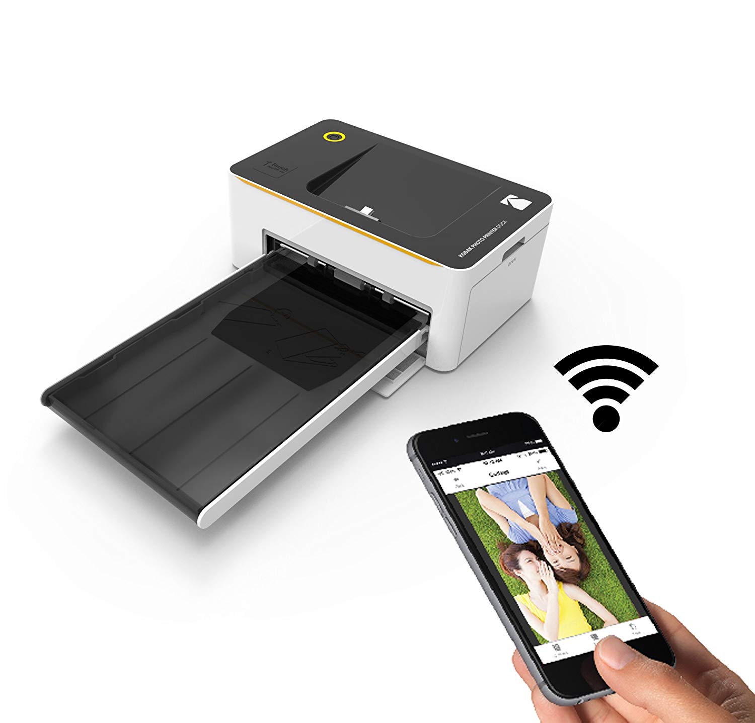 Produce quality prints from your smartphone or camera with the Kodak Photo Printer Dock. This printer connects to your mobile device via USB or Wi-Fi, and can print a 10x15 cm postcard-sized photo in approximately one minute. 10 sheets of photo paper are included, and each produces waterproof and fingerprint-proof prints with a protective layer to preserve color and image quality.