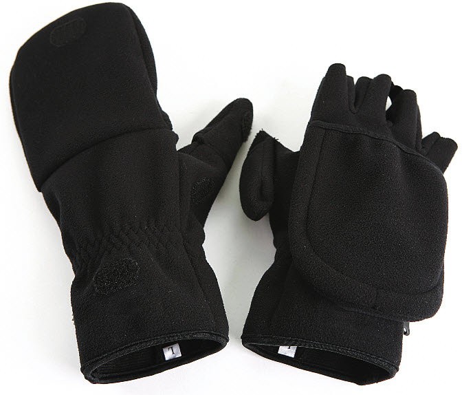 Combination of mitten and half finger gloves for perfect mobility, secure grip and ideal protection against cold. Mitten and thumb cover can be folded back and fastened with a Velcro strip. Made of breathable, skin friendly fleece with anti-slip coating on the palm.