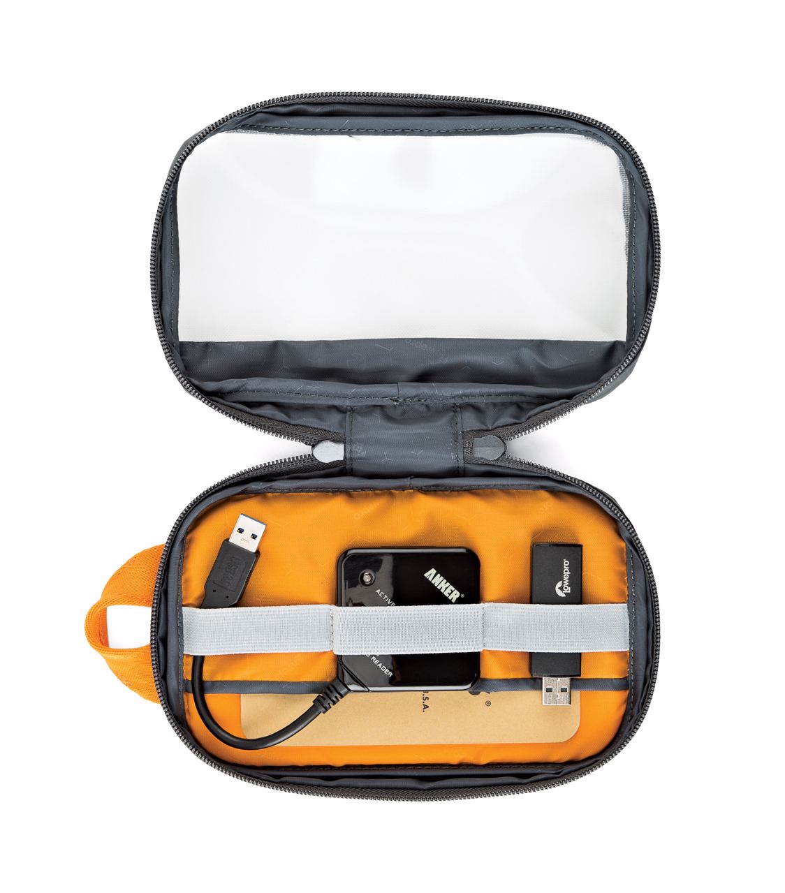 Our most compact GearUp pouch is perfect for organizing all the cords and small accessories you need to keep your smartphone going! Customize the configuration according to your storage needs and easily access your kit via the double sided 360° zipper.