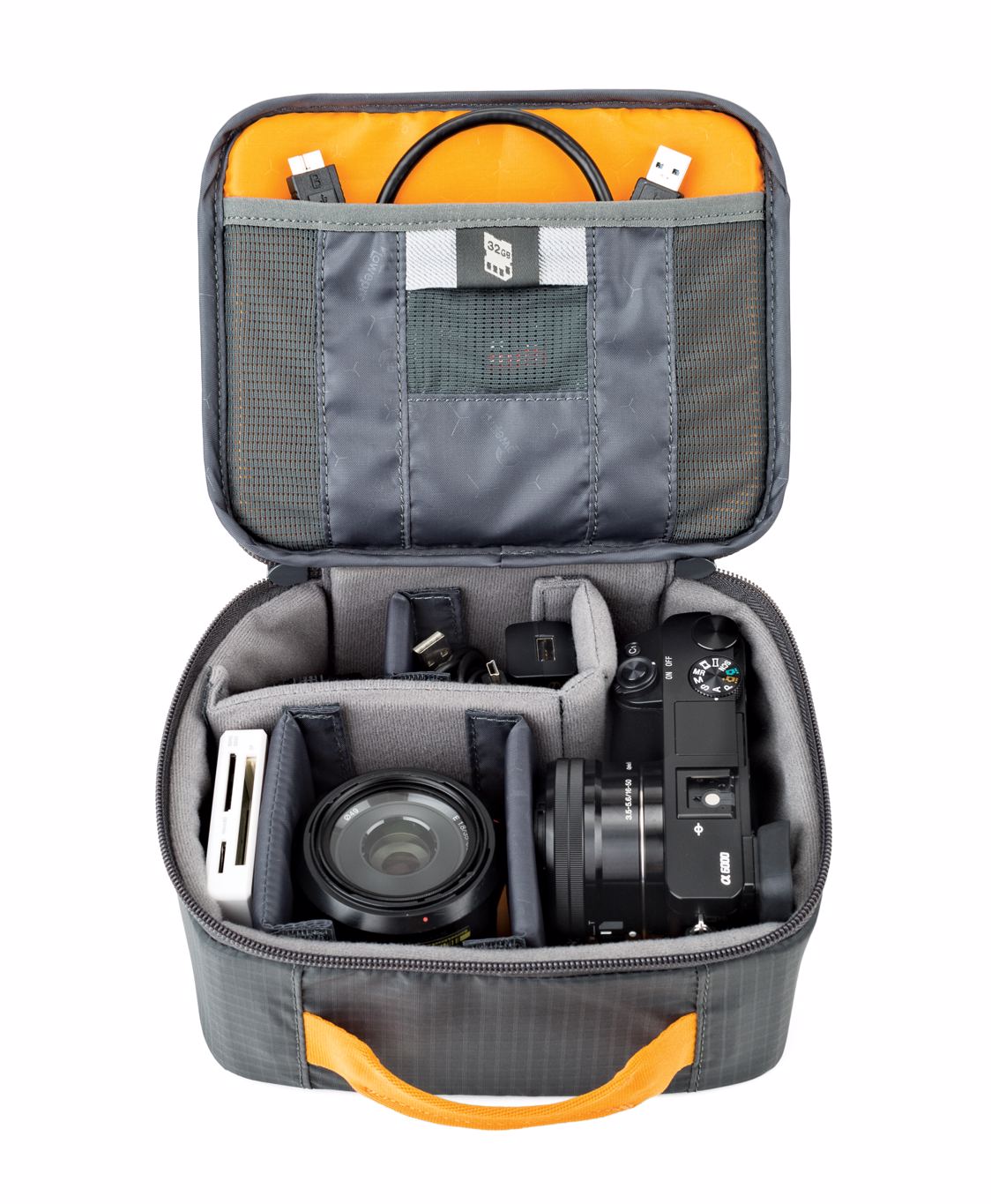 Interior pockets for memory card, cables & more