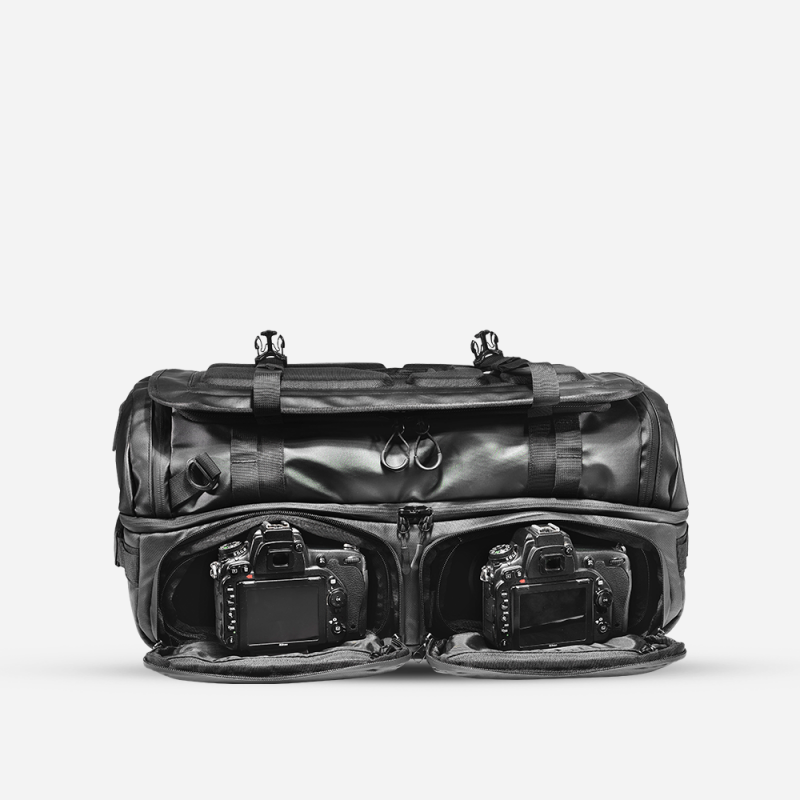The Hexad Carryall Duffel is tailor-made for the traveling photographer. The size of the bag is within the limit for hand luggage on the plane. You carry the backpack comfortably on your back with the stowable shoulder straps. The bag also works great as a handbag with handles on all four sides.