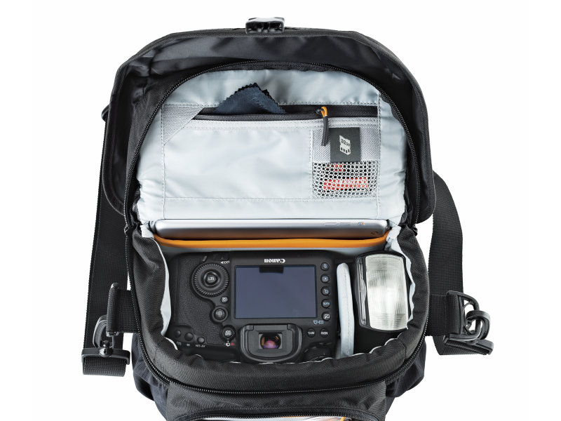 • Holds Pro DSLR with attached 17-85mm lens plus 1-2 additional lenses and flash