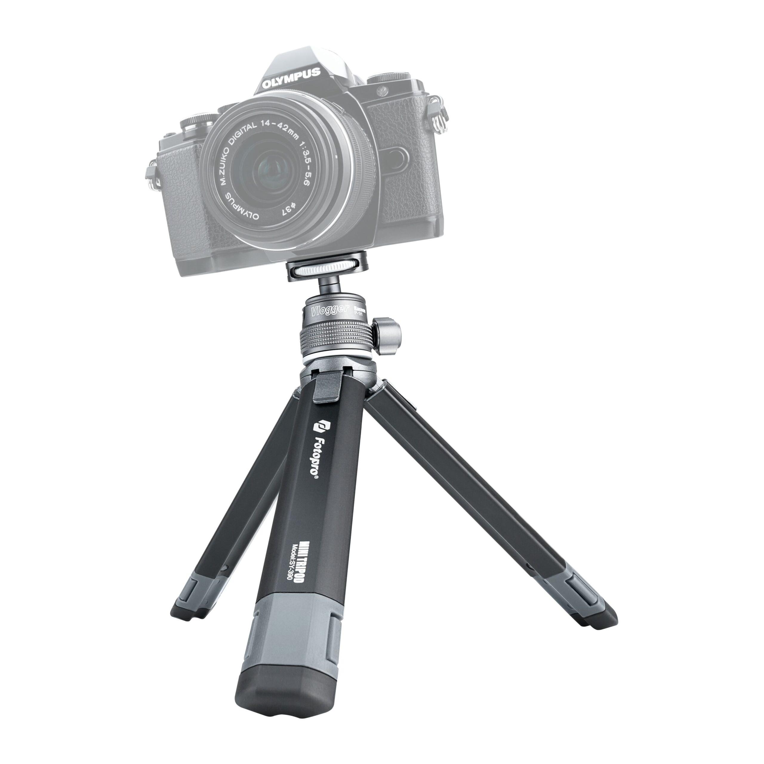 Fotopro Mini tripod weighs only 250 g. However, it is strong and stable enough to handle a 2 kg camera.