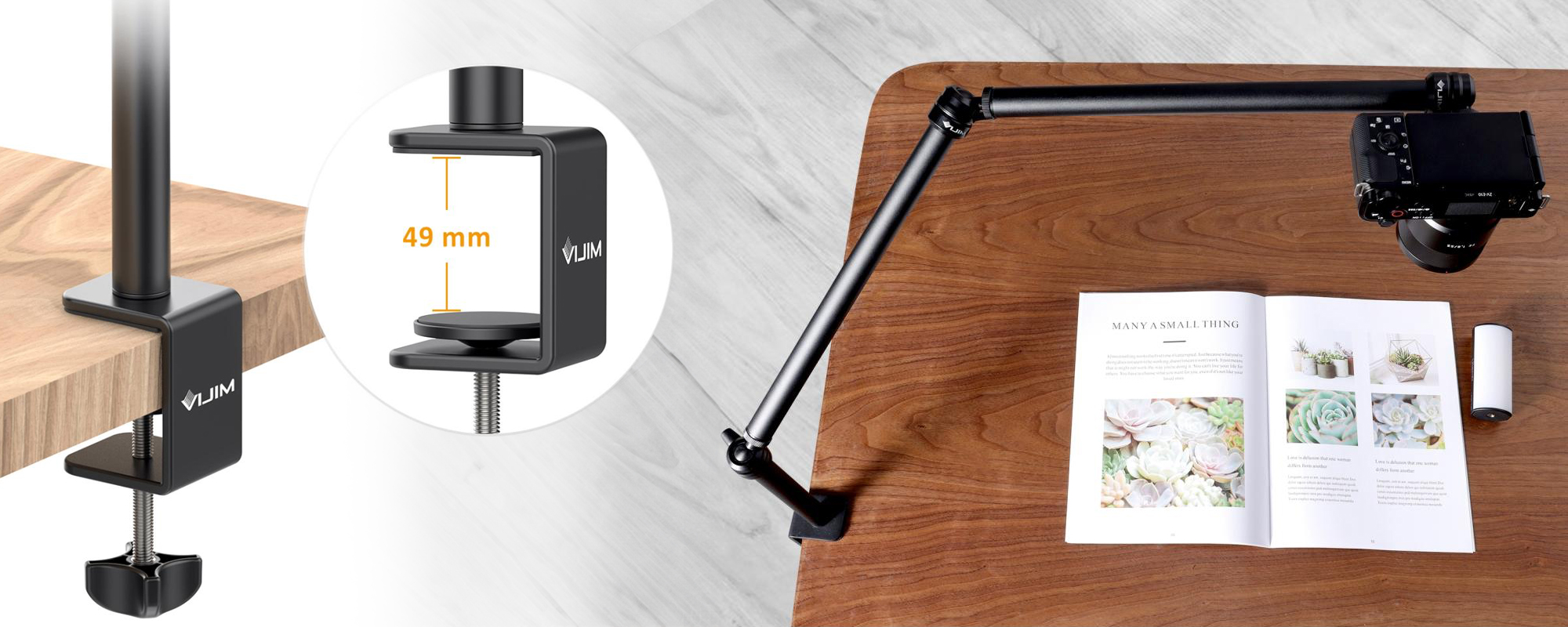 The Ulanzi LS08 arm will provide you with optimal conditions for working with audio, photo or video equipment. It will be an ideal choice wherever ordinary tripods take up too much space. You can easily install the special “C-clamp” on a desk or countertop, the thickness of which does not exceed 5 cm. The vice-like mounting will ensure that the tripod will always stay in place. The use of silicone facings will not only provide better grip, but also protect your furniture from damage.
