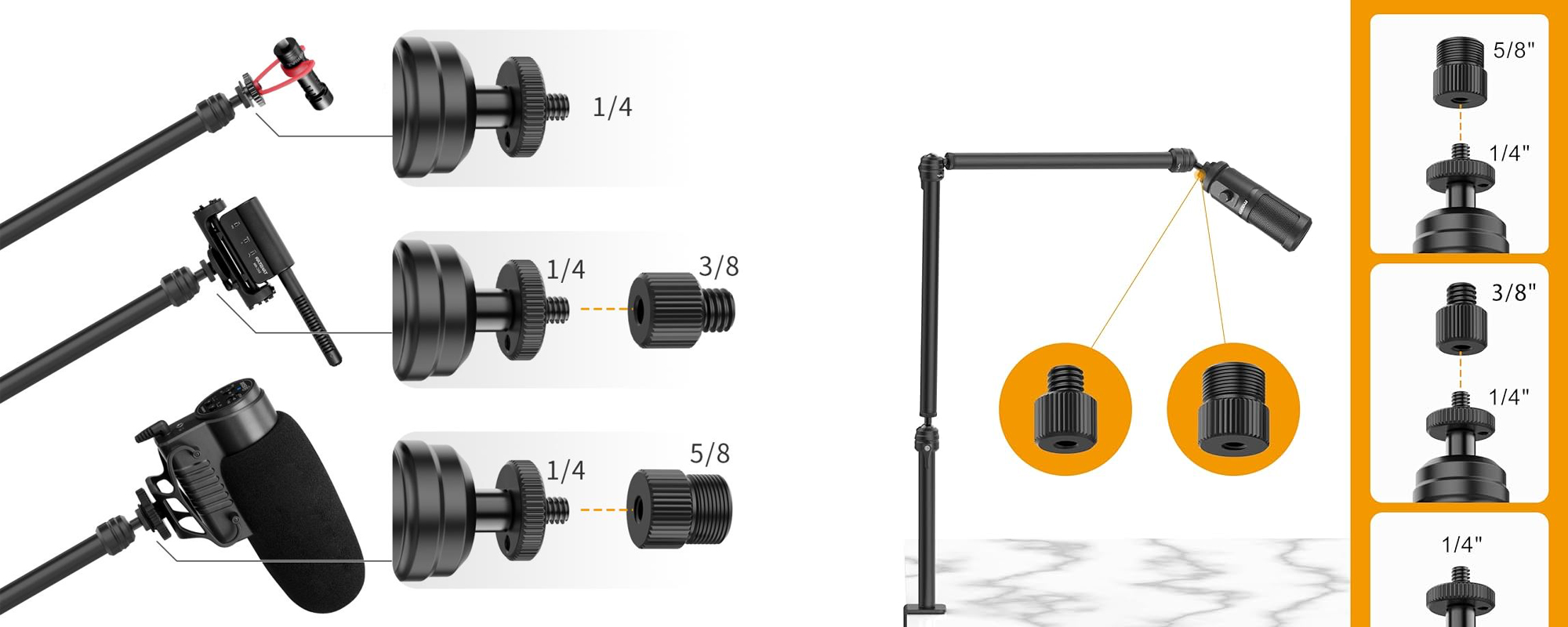 compatible mounts: 1/4″, 3/8″, 5/8″