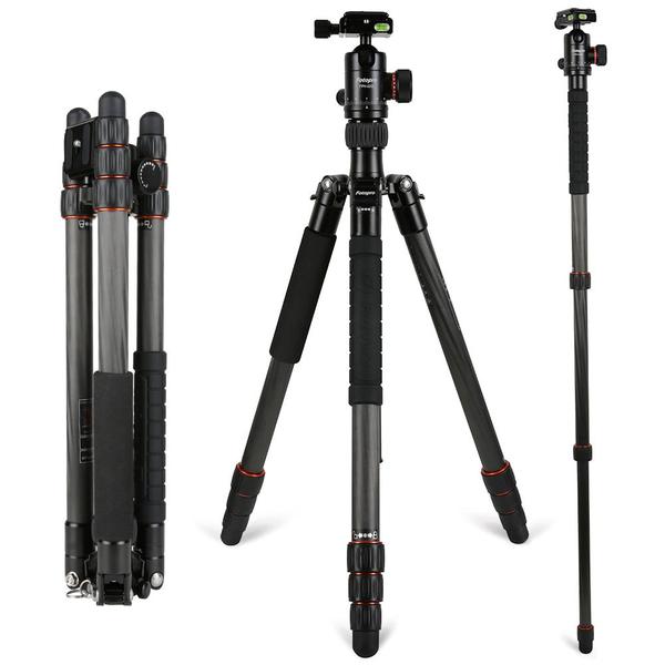 X-go Max tripod legs are made of high-quality Carbon Fiber Material. 180-Degree Reverse Folding : Only 18.7 inch (47.5 cm).(included a portable tripod carrying bag)
