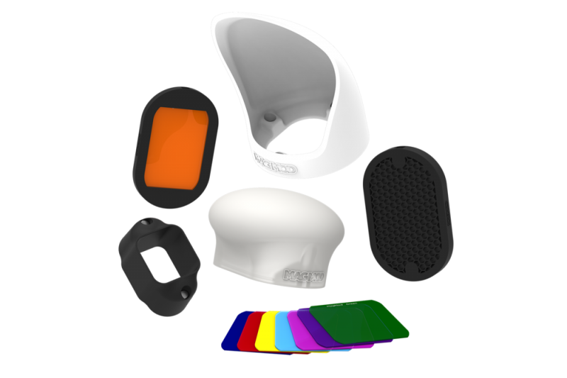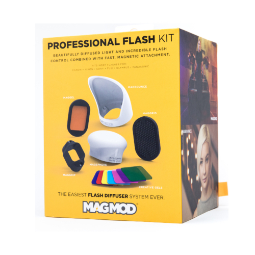 The MagMod Professional Flash Kit contains the six best-selling Speedlight light transformers from MagMod, namely the MagGrip, MagGrid, MagGel, MagSphere, MagBounc4e and the Creative Gel set. With this comprehensive kit you have easy control over the light of your reporter flash.