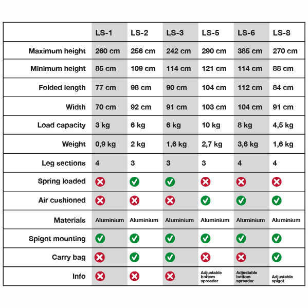 The Caruba LS-1 light stand consists of four sections that are adjustable by operable clamp locks. Despite its light weight of just under a kilo, the lamp tripod has a maximum height of 280 centimeters and a maximum load capacity of three kilograms. At the top there is a universal 1/4 "spigot mount. The Caruba LS-1 provides a stable base for, for example, a studio lamp or flash head thanks to the center diffuser. The tripod comes with a carrying bag.