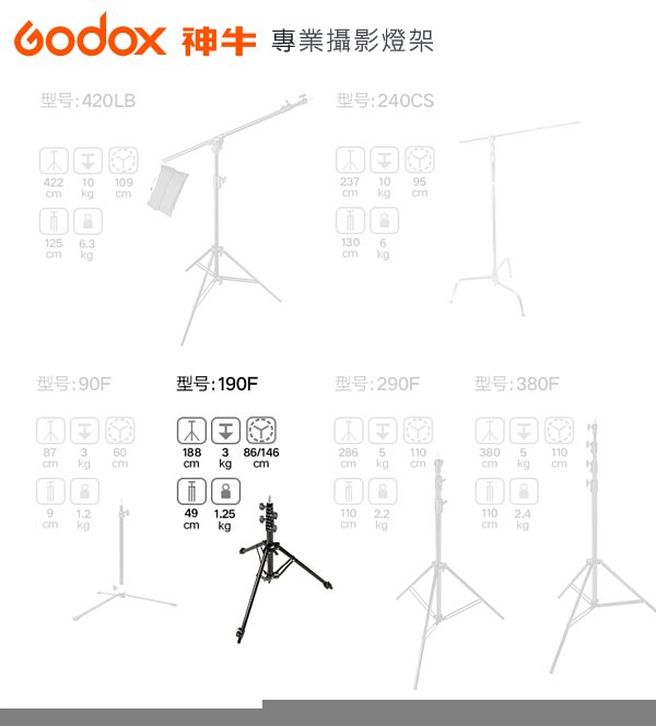 LIGHT STAND»GODOX»Godox 190F Compact Adjustable Leg Light Stand / 187 cm»(new)