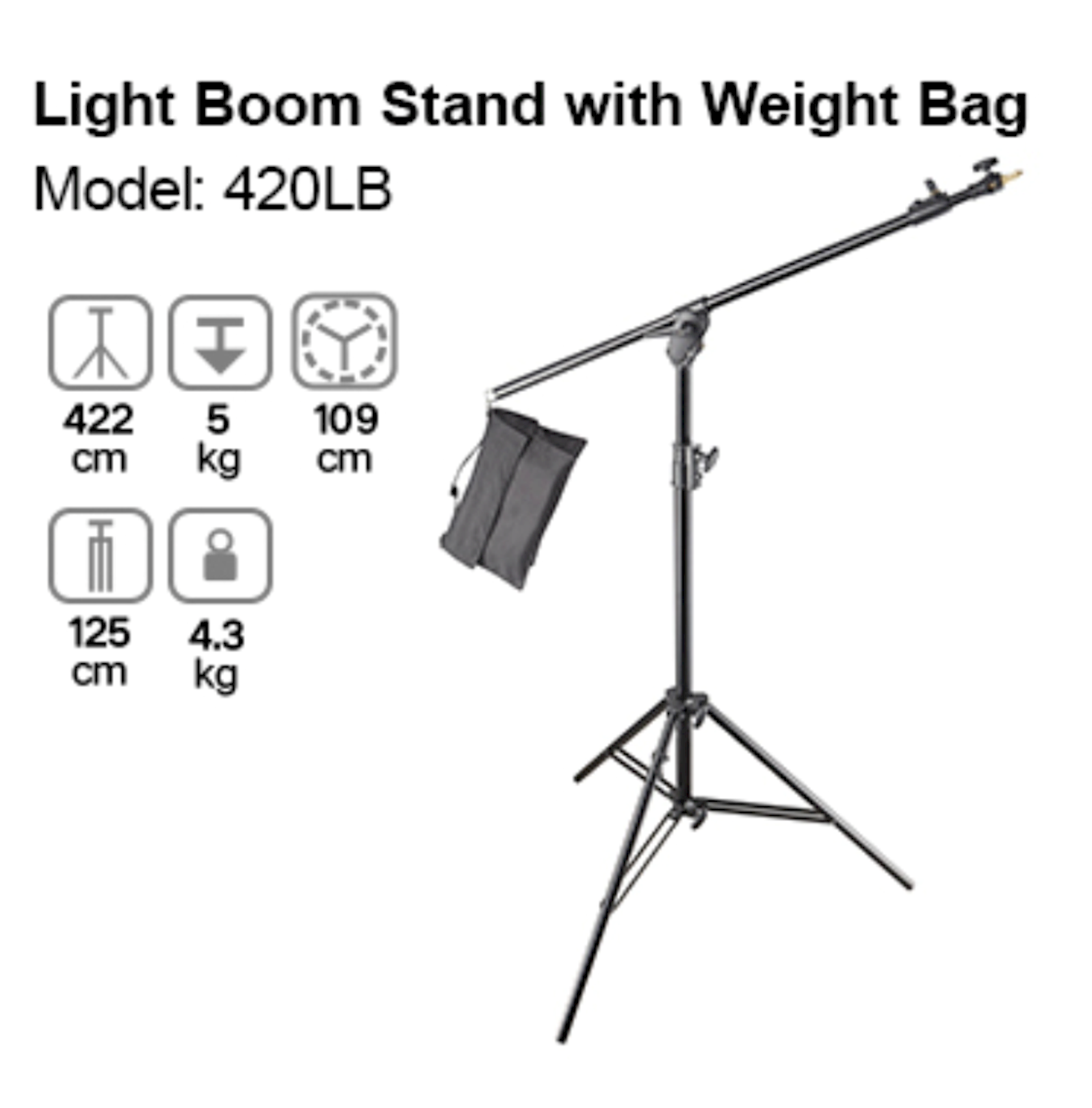 The Godox 420LB Light Boom Stand is designed for both studio and location shoots. Especially suitable for flashing a flash lamp from a specific location.