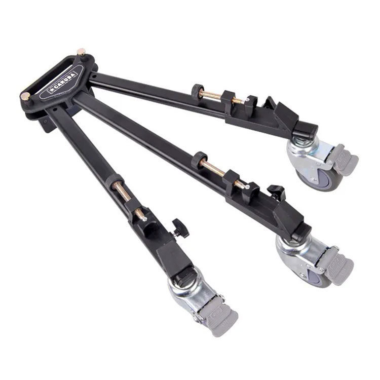 The Caruba Tripod Dolly is light enough and easy to fold and carry. The universal leg lock fits almost any tripod. The most important characteristic of a good dolly is the wheels. It is important to be able to move your tripod smoothly from one place to another.