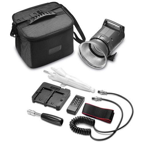 The YN760 Pro LED Video Light from Yongnuo has a user-friendly monolight form factor that is light-stand-mountable via its 180-degree tiltable receiver or can be handheld with the purchase of an optional handle. While it consumes just 80W of current, it outputs many times that in tungsten equivalency. The daylight-balanced fixture has a 5500K color temperature with a high CRI of 95 for accurate color rendering while dimming is adjustable from 1-100% in Fine Mode and 10-100% in Coarse Mode. You can make light intensity changes locally on the unit but the YN760 has a built-in wireless receiver and comes with a wireless remote that can control dimming and on/off functions at distances up to 49'. The light has a receptacle that accepts the included white translucent umbrella for a softer quality of light. The AC/DC YN760 can run on AC power with separate purchase of an adapter but it can also be powered by 2 or 4 NP-F750 batteries for on-location shooting without access to mains current. A carrying case is also included.