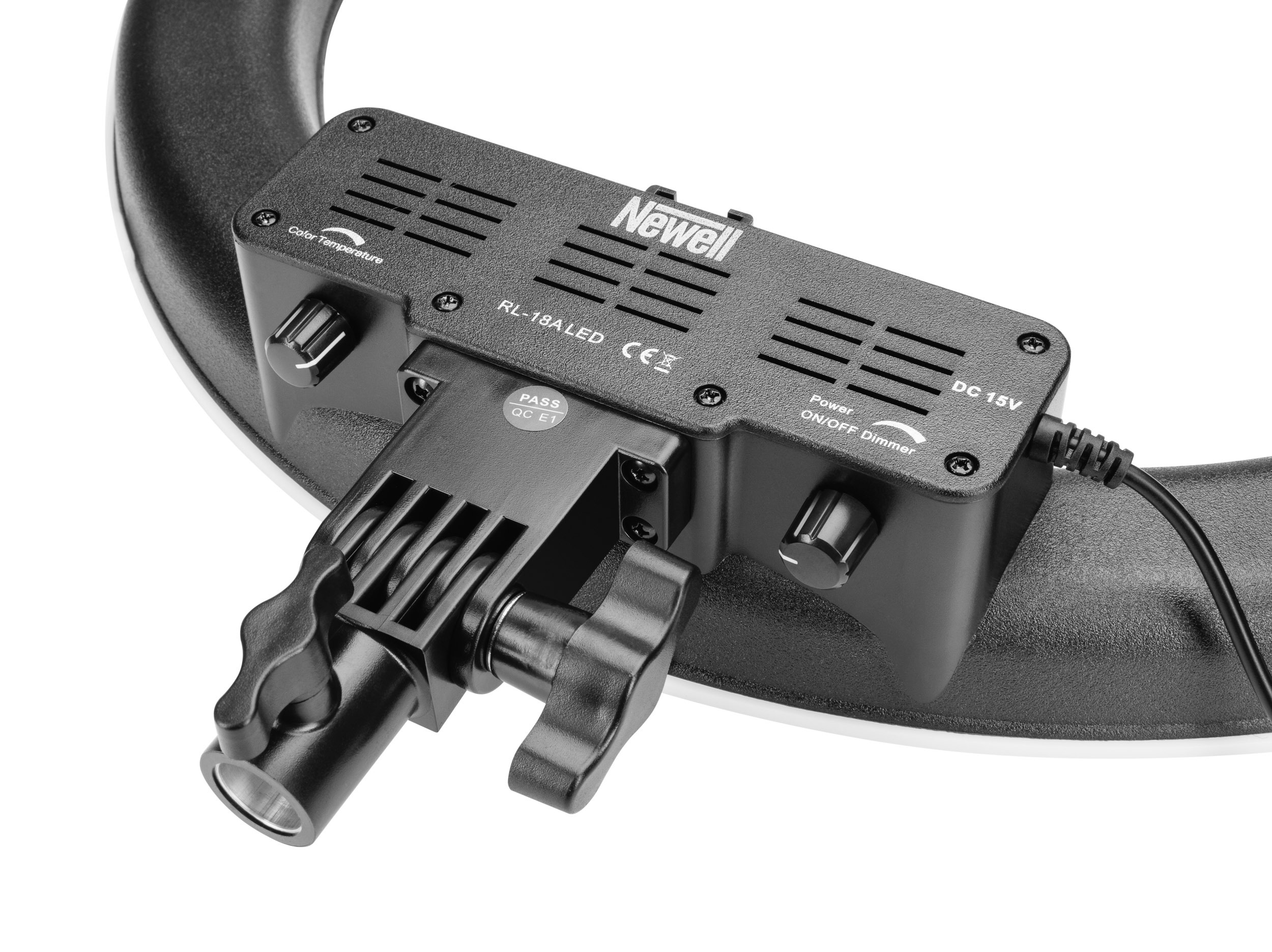The Newell RL-18A LED lamp power supply is provided by the included DC 15 V mains adapter.