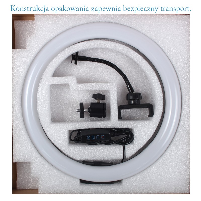 Easy installation on a studio tripod with a standard 16 mm tip allows the 3D ball head , ensuring comfortable work with the lamp. The internal reflecting surface allows for high lighting efficiency , and the shape of the circle makes the photographed object evenly illuminated from all sides.